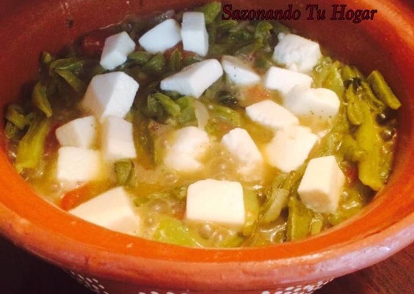 - Integra los nopales y sazona con sal. Cocina hasta que se calienten y retira del fuego y decora con cubitos de queso fresco. Yumiii👌🏻👌🏻Enjoy😋😋