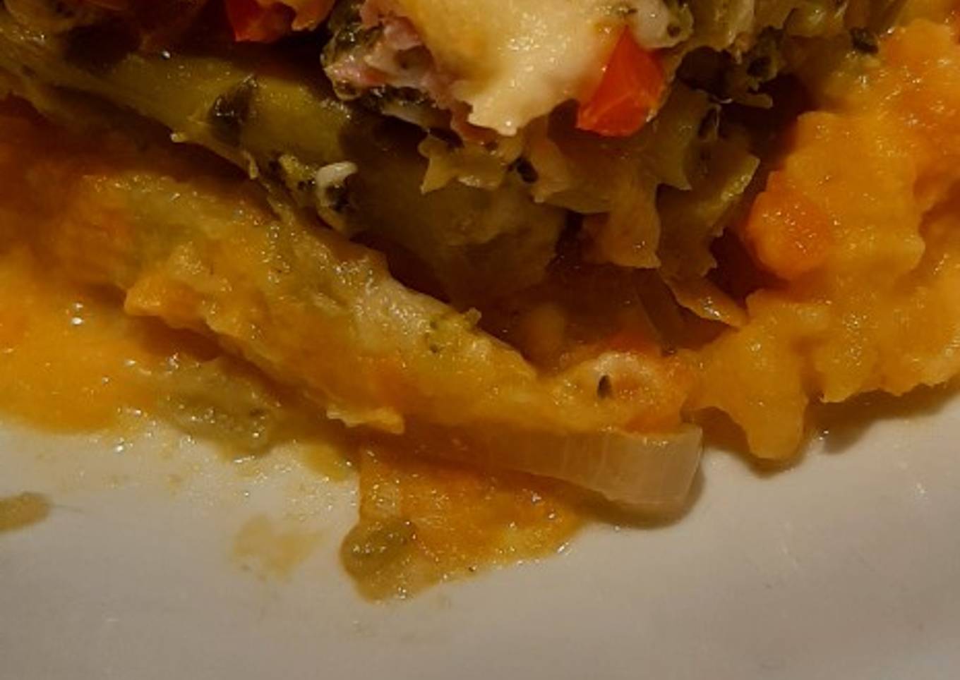 - Pisar el la batata y la zanahoria juntos. En una pared hacer un piso con este puré.