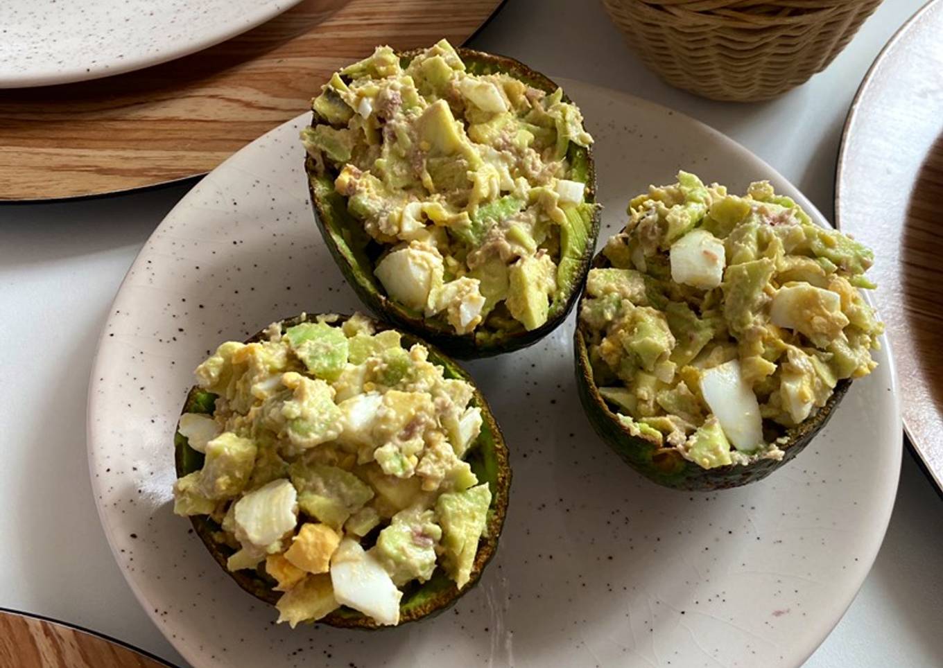 - Mezclar en bowl los trozos de aguacate, con el atún, el hueco cocido, la mayonesa, la sal y la pimienta. Dejar enfriar en la nevera